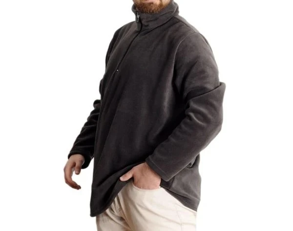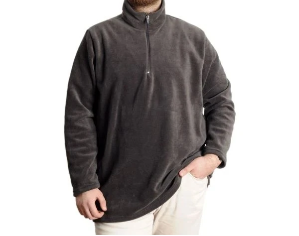 Erkek Sweat Polo Yaka Yarım Fermuarlı Polar 22548 Füme