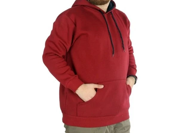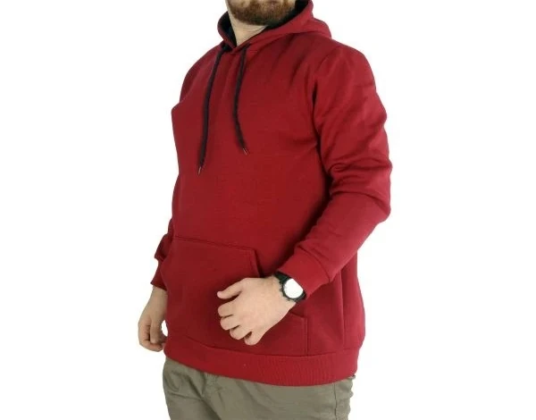Erkek Sweatshirt Kapşonlu Kanguru Pocket Basic 20562 Bordo