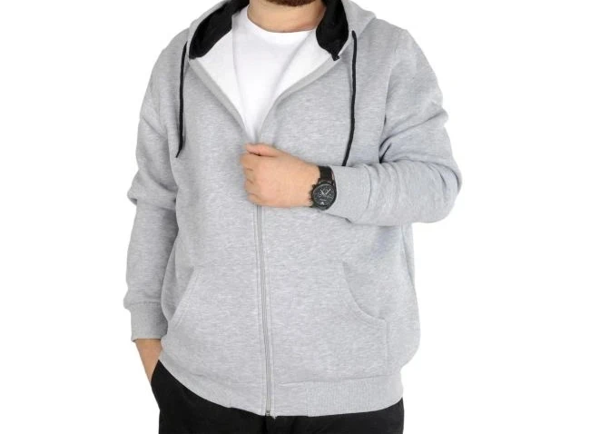 Erkek Sweatshirt Kapşonlu Zippered Basic 20543 Grimelanj